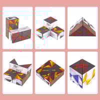 Our kaleidoscope fidget toy is made of four hinged, plastic pyramids with psychedelic, tear-resistant stickers. Our manipulative toy infinitely rotates to show you a total of 4 unique colorful designs & is super easy to use! No noise, no gimmicks, just pure flipping fun!