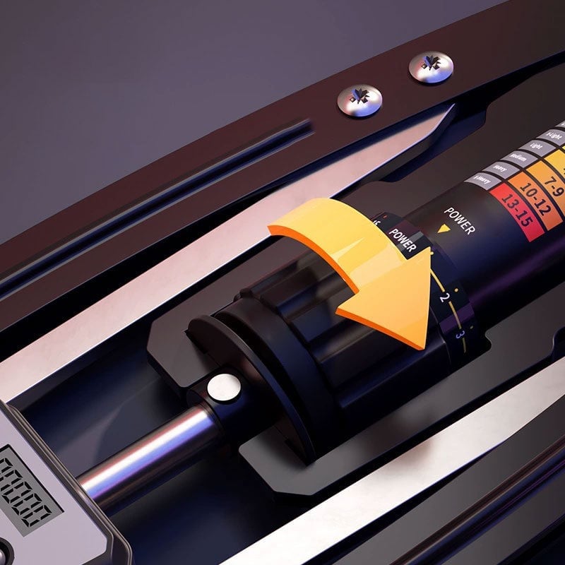 Adjust resistance by rotating the hydraulic cylinder control dial (10KG–200KG).