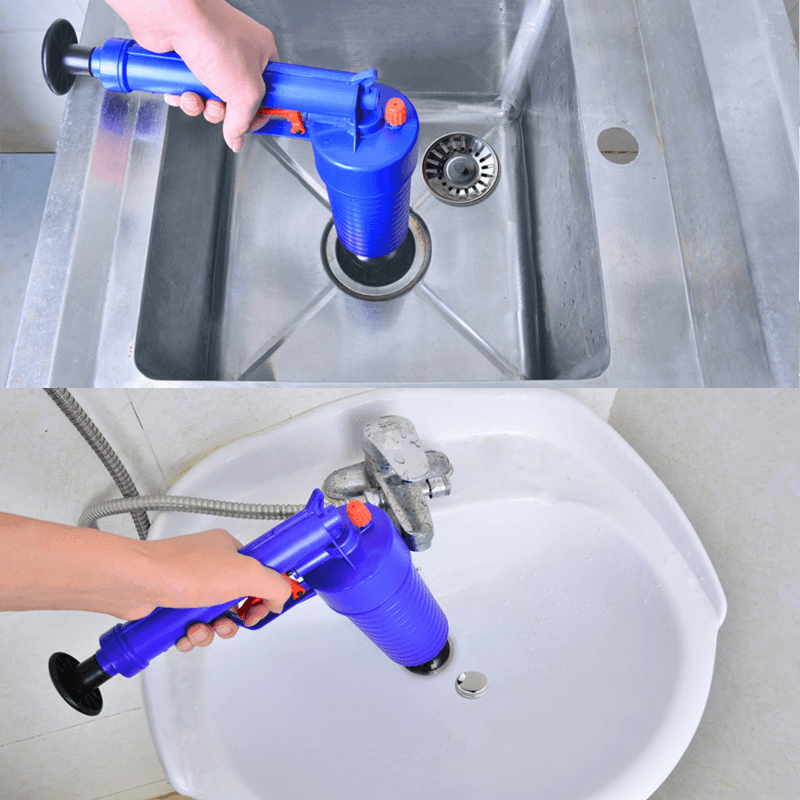 EASY TO USE. The drain blaster uses the power of high-pressure compressed air to blast away the toughest clogs in your drains in just seconds.Just pump the drain blaster and squeeze the trigger, the clog is cleared instantly. Much faster than traditional plungers and snake and No more waisting time on drain openers.